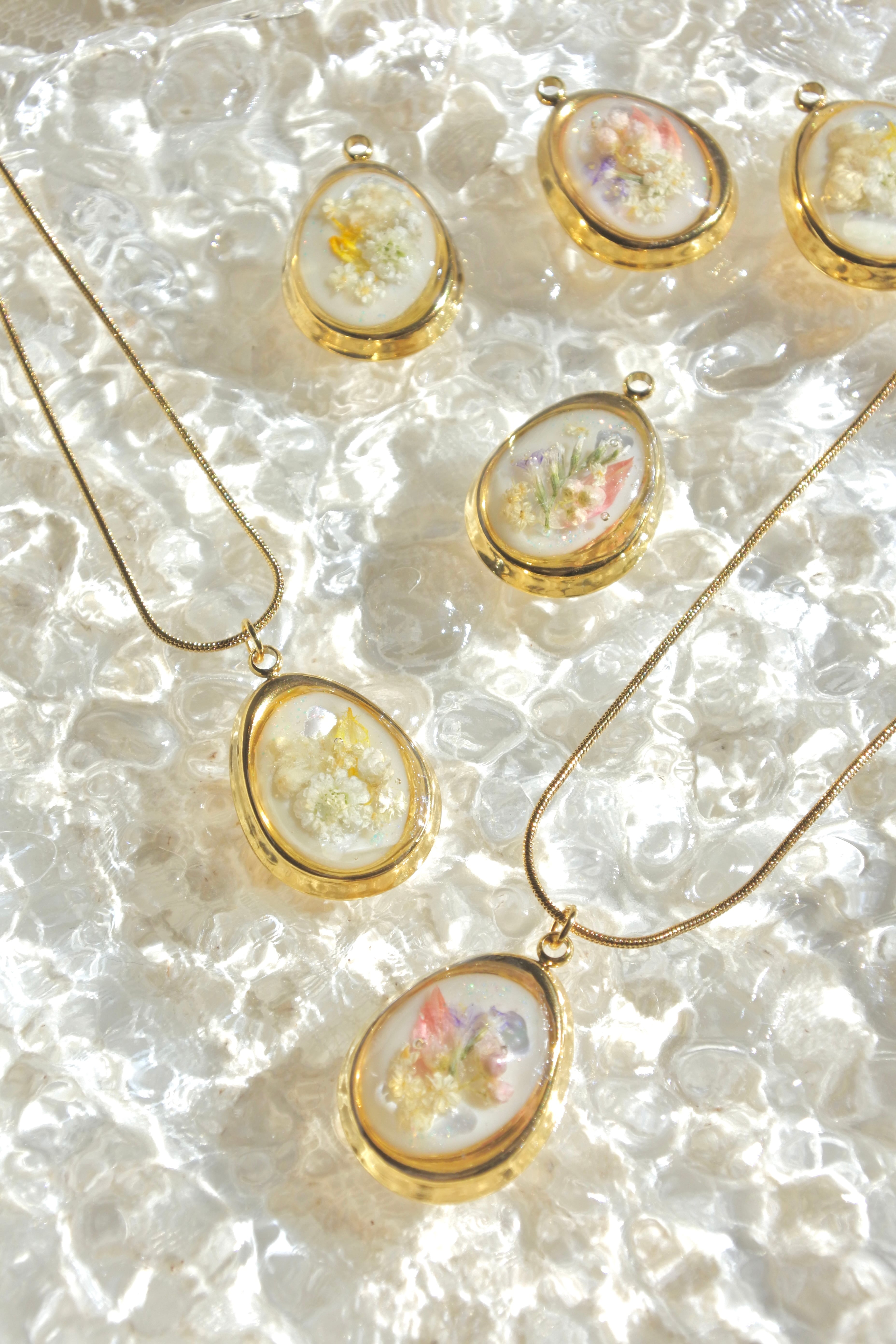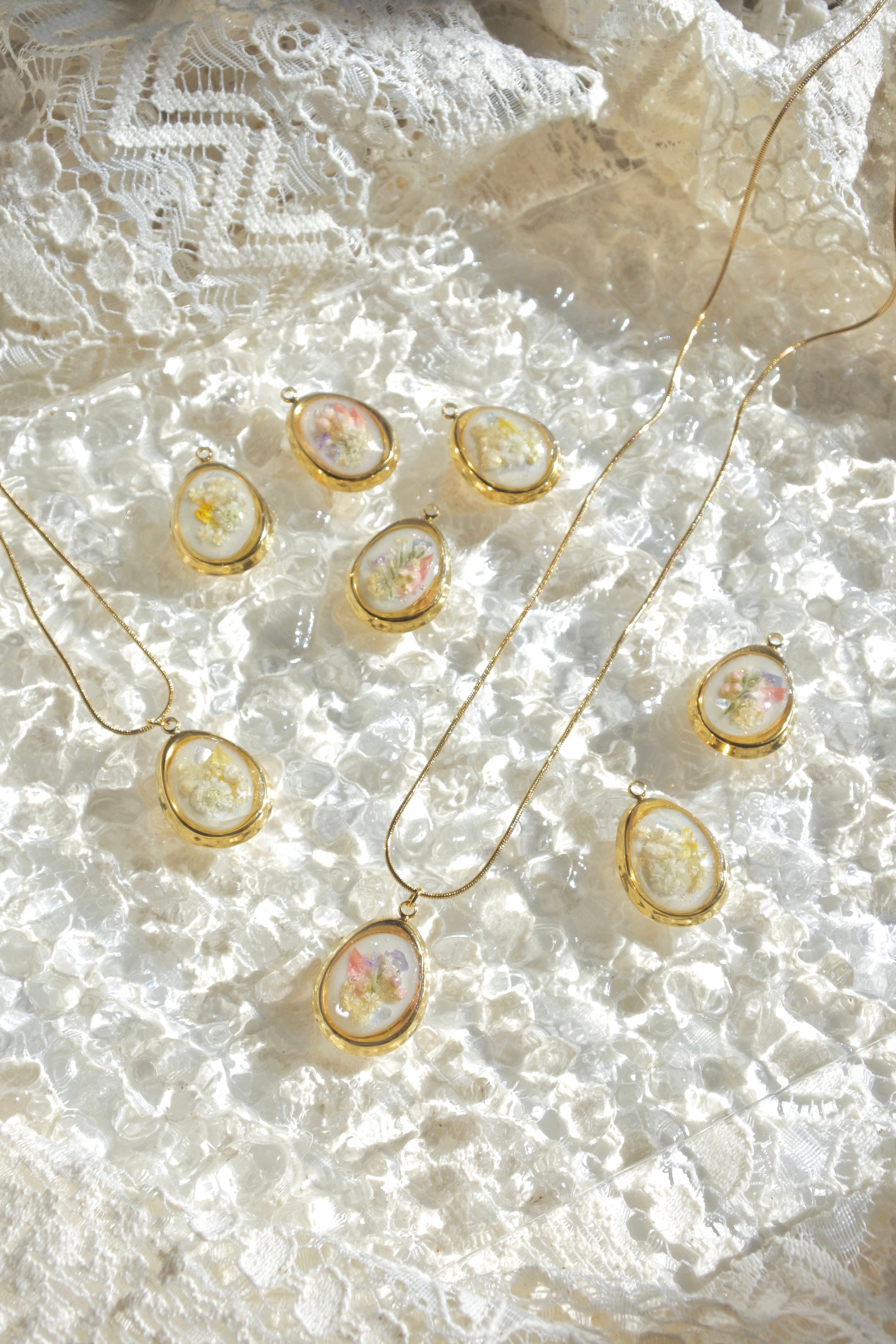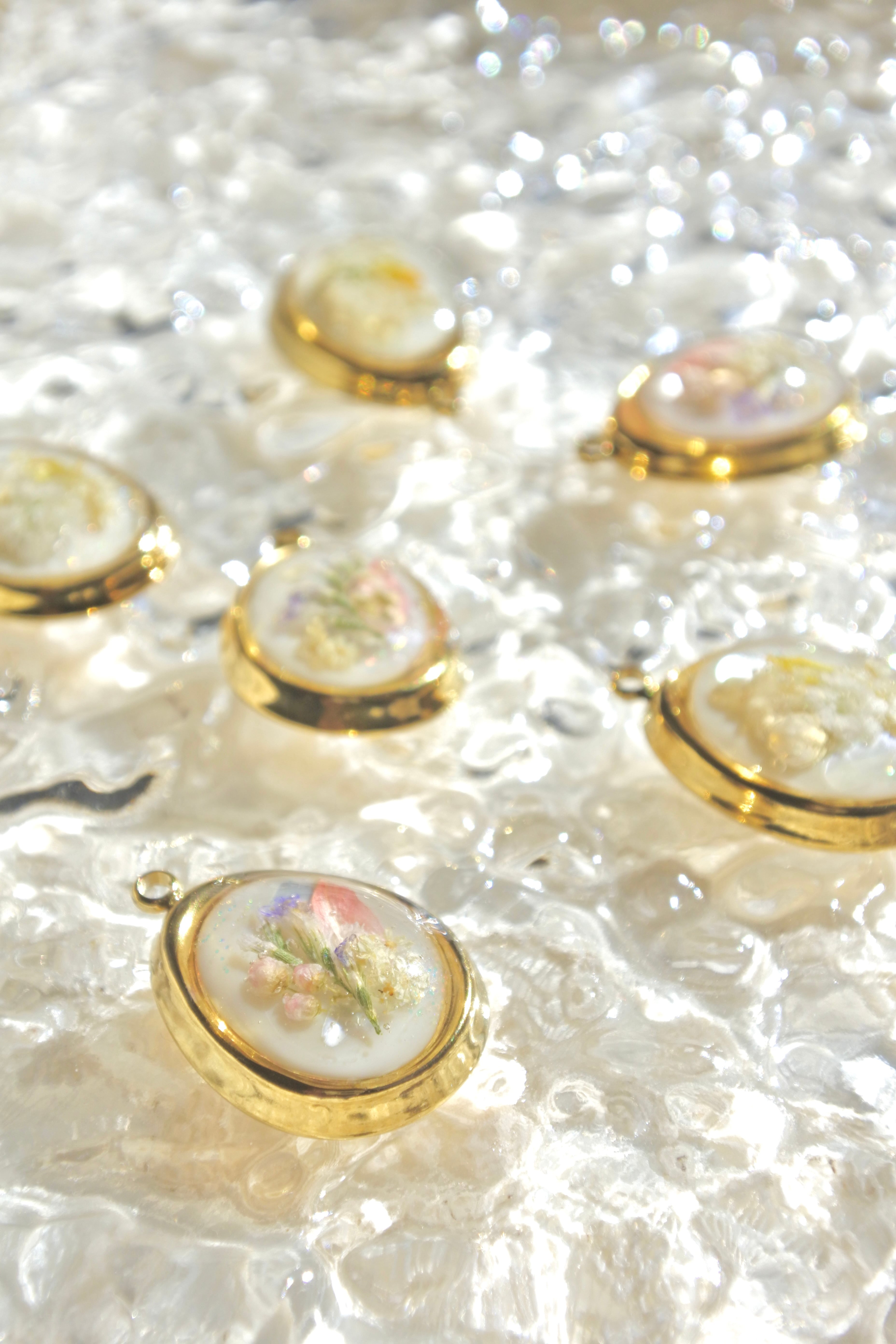 ドライフラワーを一輪ずつ丁寧に閉じ込めました