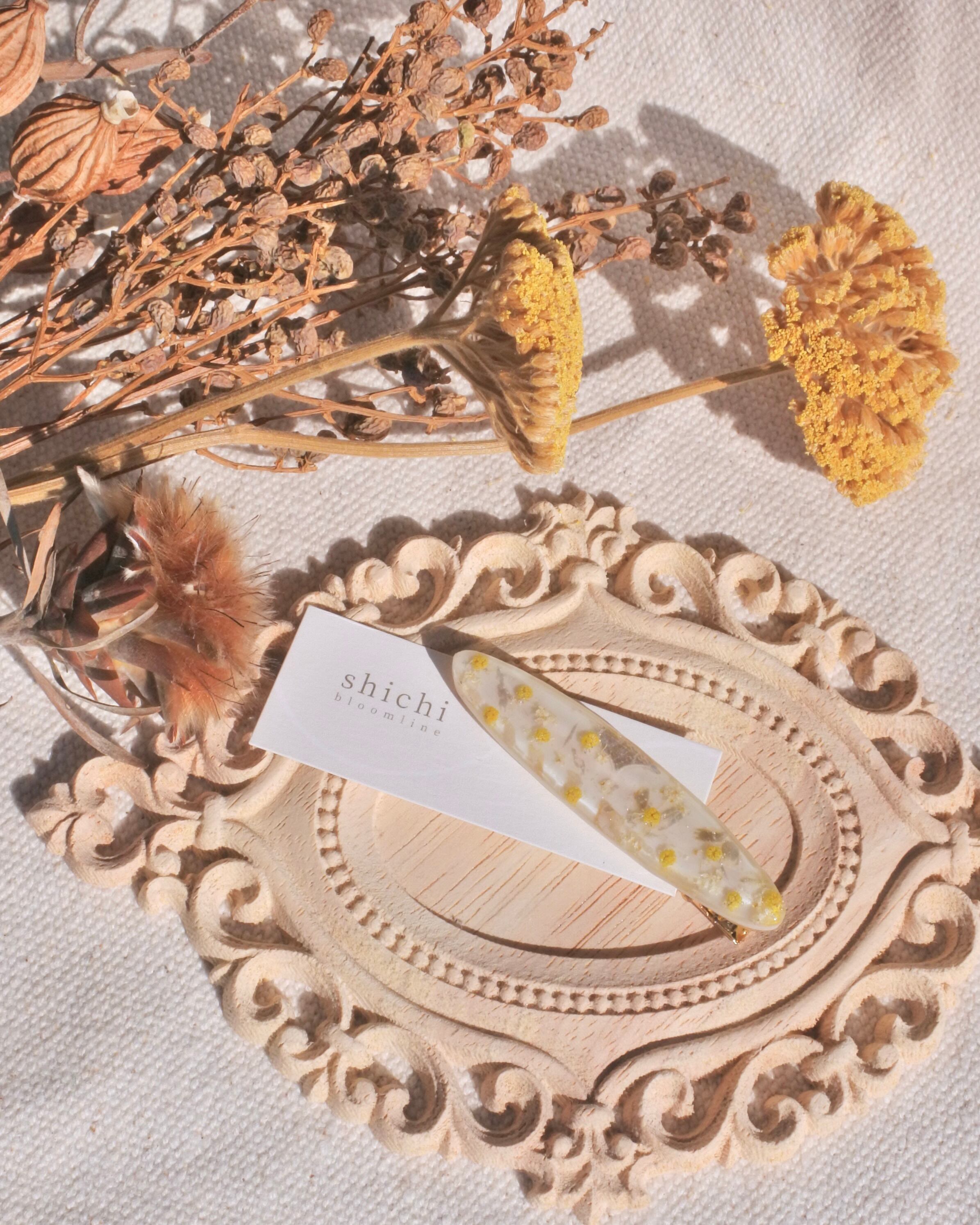 ミモザの小さな花をぎゅっと閉じ込めたヘアピンです